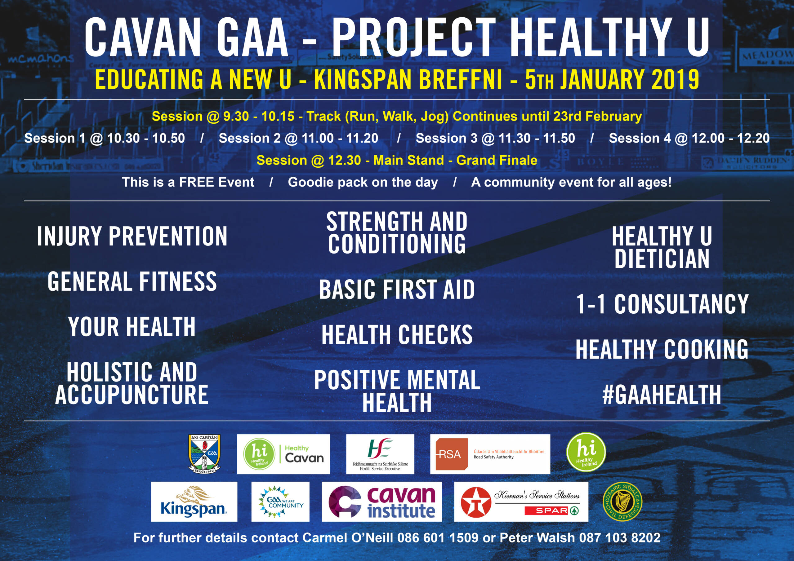 ‘Project Healthy U’ is the start of a couch to 5K being organised by Cavan GAA. The event starts on Saturday 5th January 2019 with streching and exercise, followed by a short run, walk or jog. The exercise continues weekly @9.30 every saturday morning until 23rd February.
