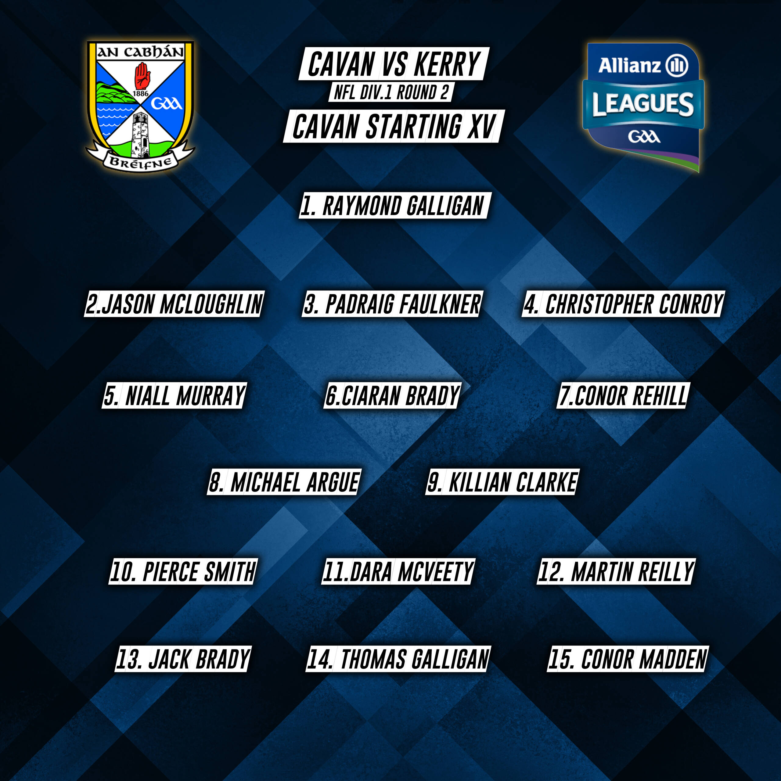 Senior management have named the panel for this Sunday’s Allianz Football League Round 2 game v Kerry. Throw in is 2.00pm in Kingspan Breffni.