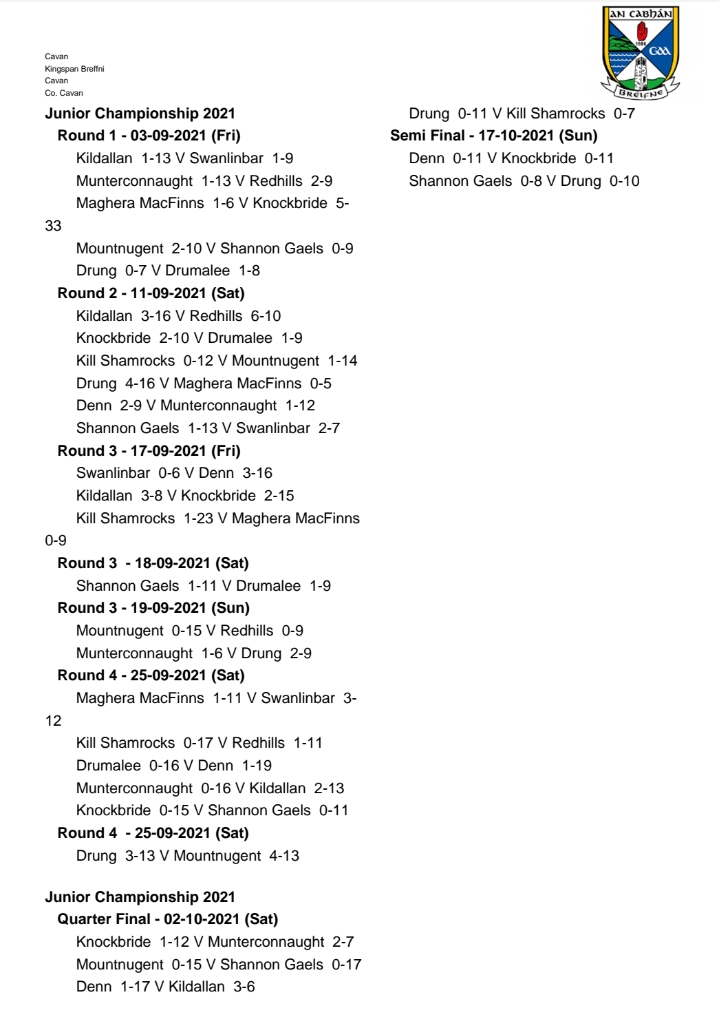 Michael Fitzpatrick Architects 2021 Junior Football Championship Results