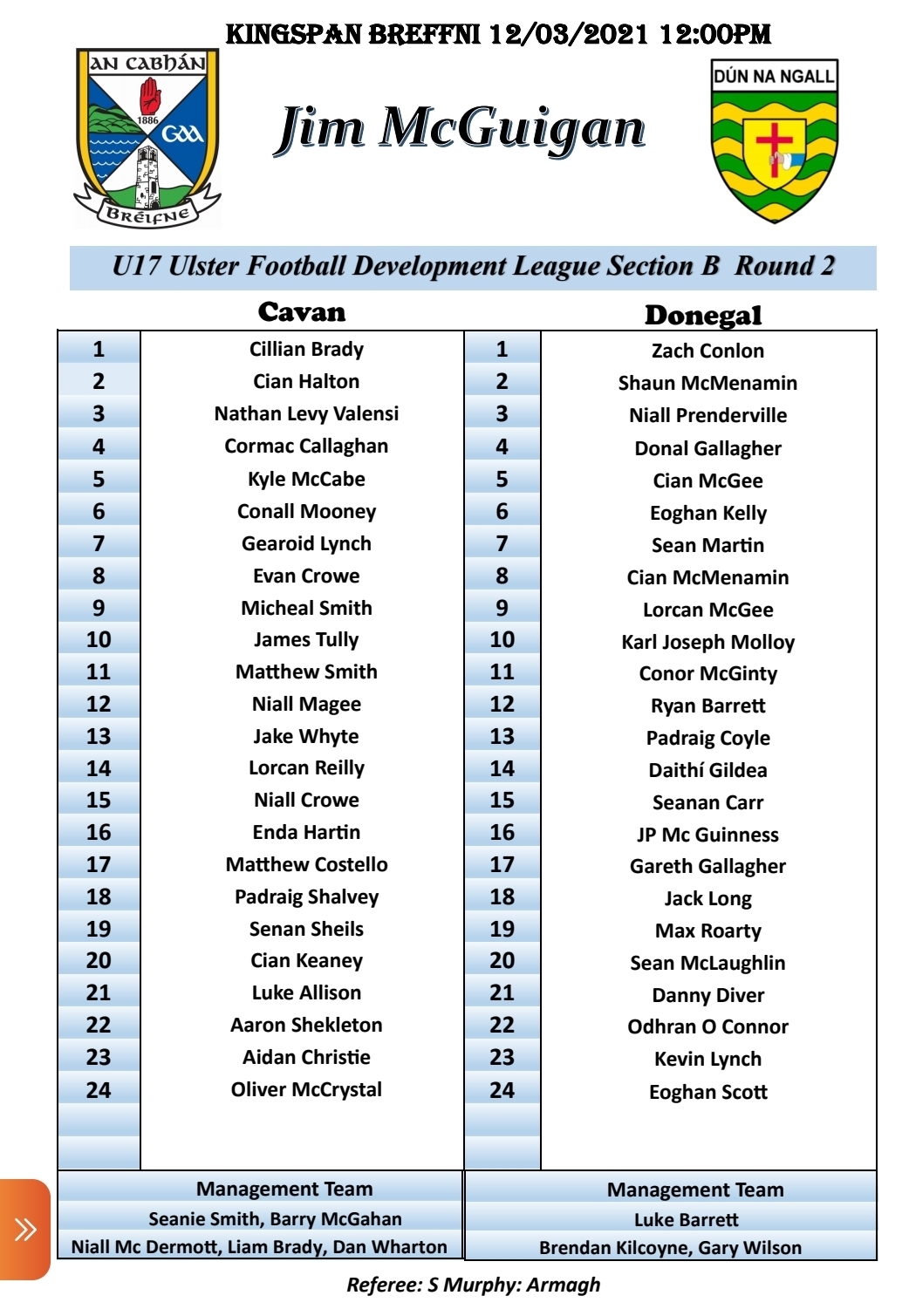 Jim McGuigan U17 Development League Round 2 Cavan V Donegal