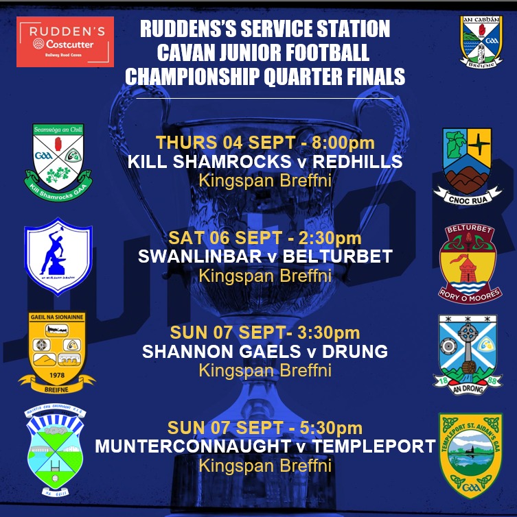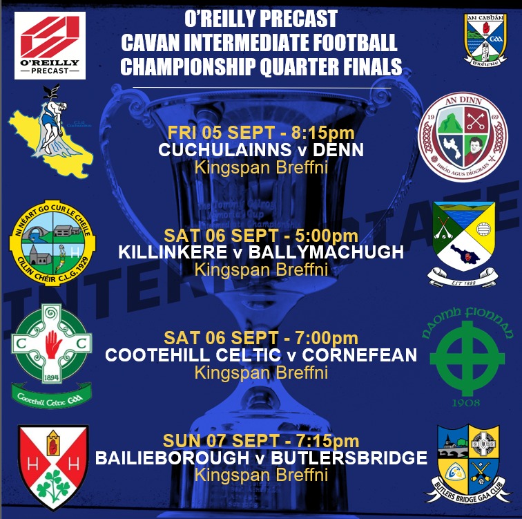 Cavstream.ie will cover live Cuchullains v Denn, Ballymachugh v Killinkere, Cootehill v Cornafean, Bailieboro v Butlersbridge in the IFC & Munterconnaught v Templeport in the JFC.