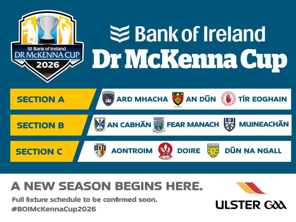 Here are the groups for the upcoming 2026 Bank of Ireland Dr McKenna Cup πŸπŸ†