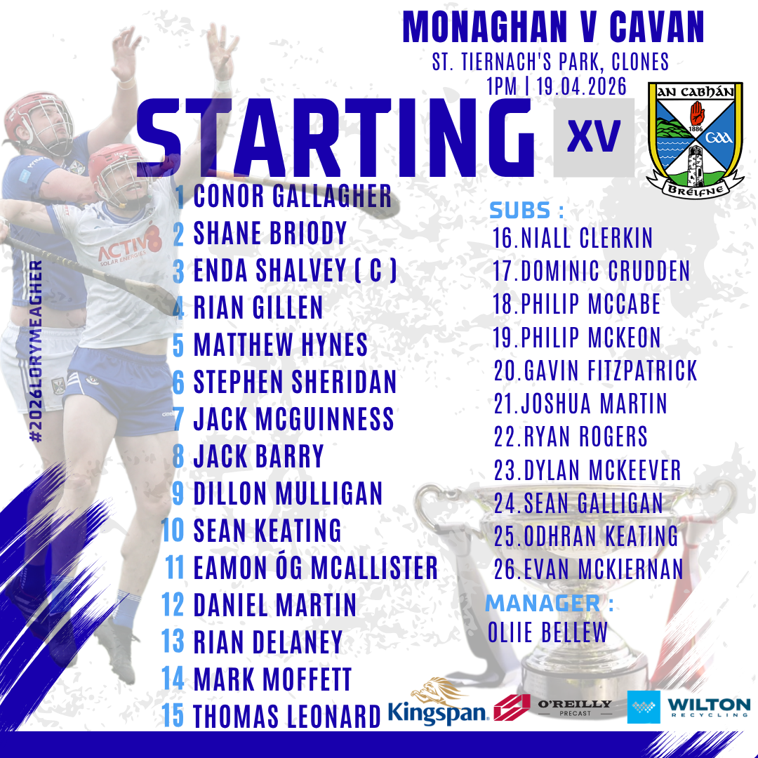 Ollie Bellew and his management team name their squad for Lory Meagher Cup RD.2 match. Part 1 of a wonderful Cavan v Monaghan Double header in Clones